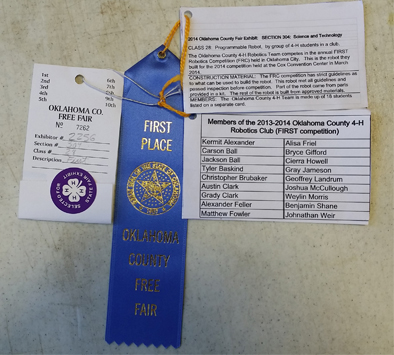 Our FRC robot got a blue ribbon and was selected to advance to the next level ... The Oklahoma STATE fair.